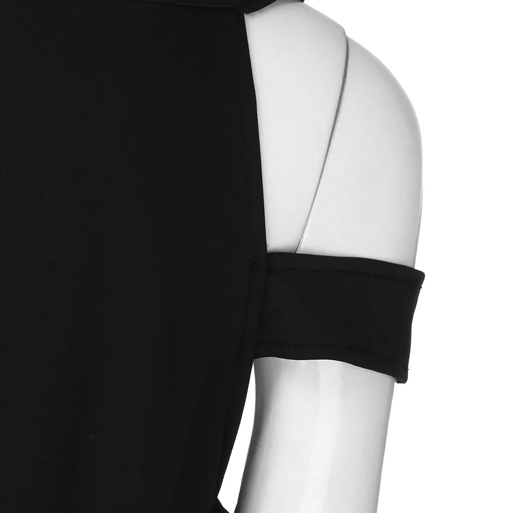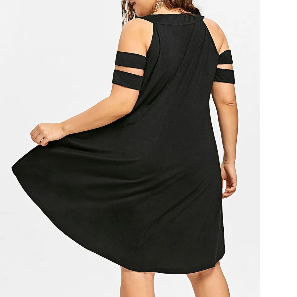 Женское платье с коротким рукавом, черное повседневное ажурное платье без бретелек, с круглым вырезом и открытыми плечами, лето размера плюс, Xl-5xl