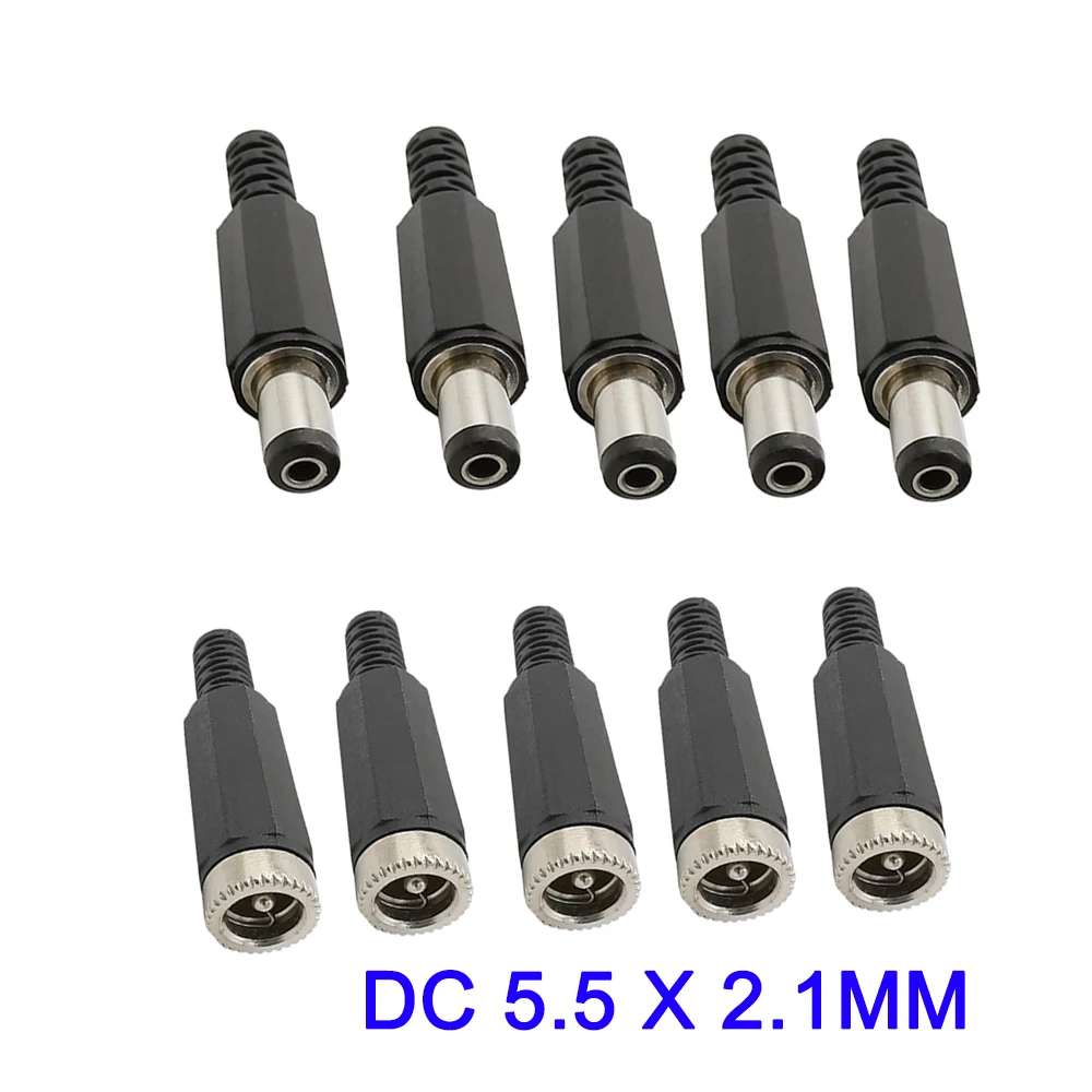 10 шт. разъем постоянного тока 5,5 мм x 2,1 мм разъем питания постоянного тока 5,5*2,1 мм Штекерный разъем постоянного тока адаптер сварочного цилиндра для проекта сделай сам