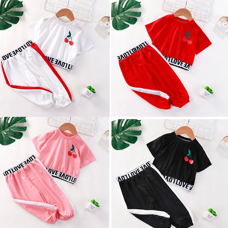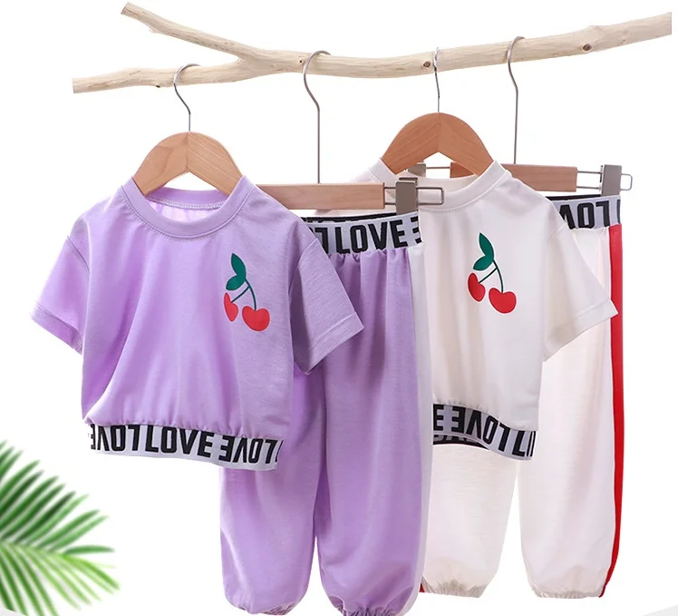 2021 Летний милый костюм из 2 предметов с вишней для девочек повсед...