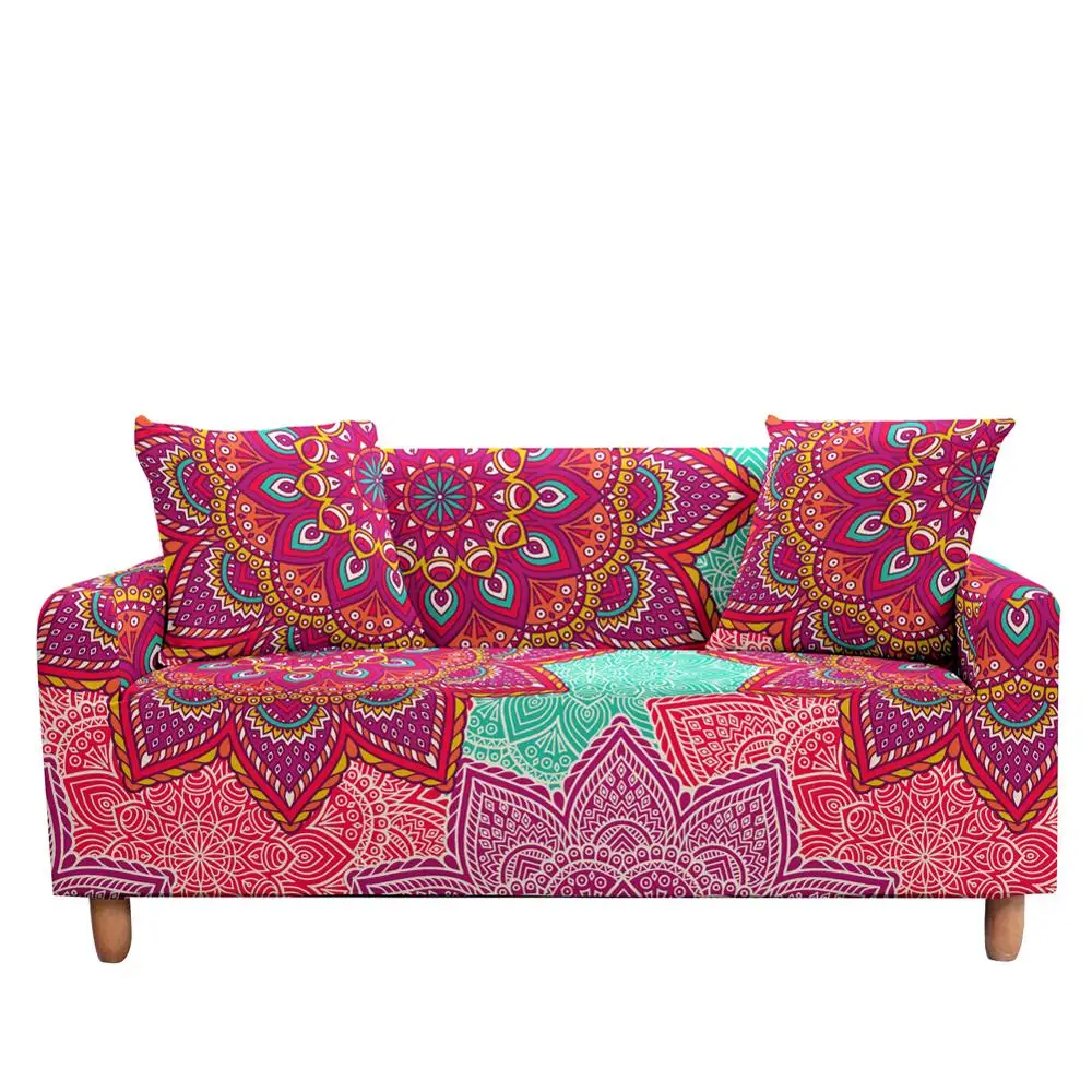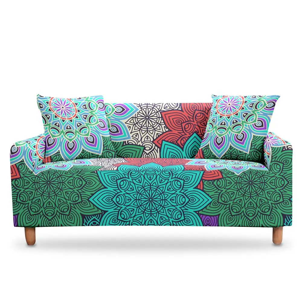 Растягивающийся чехол для дивана в клетку с цветами мандала, эласти...