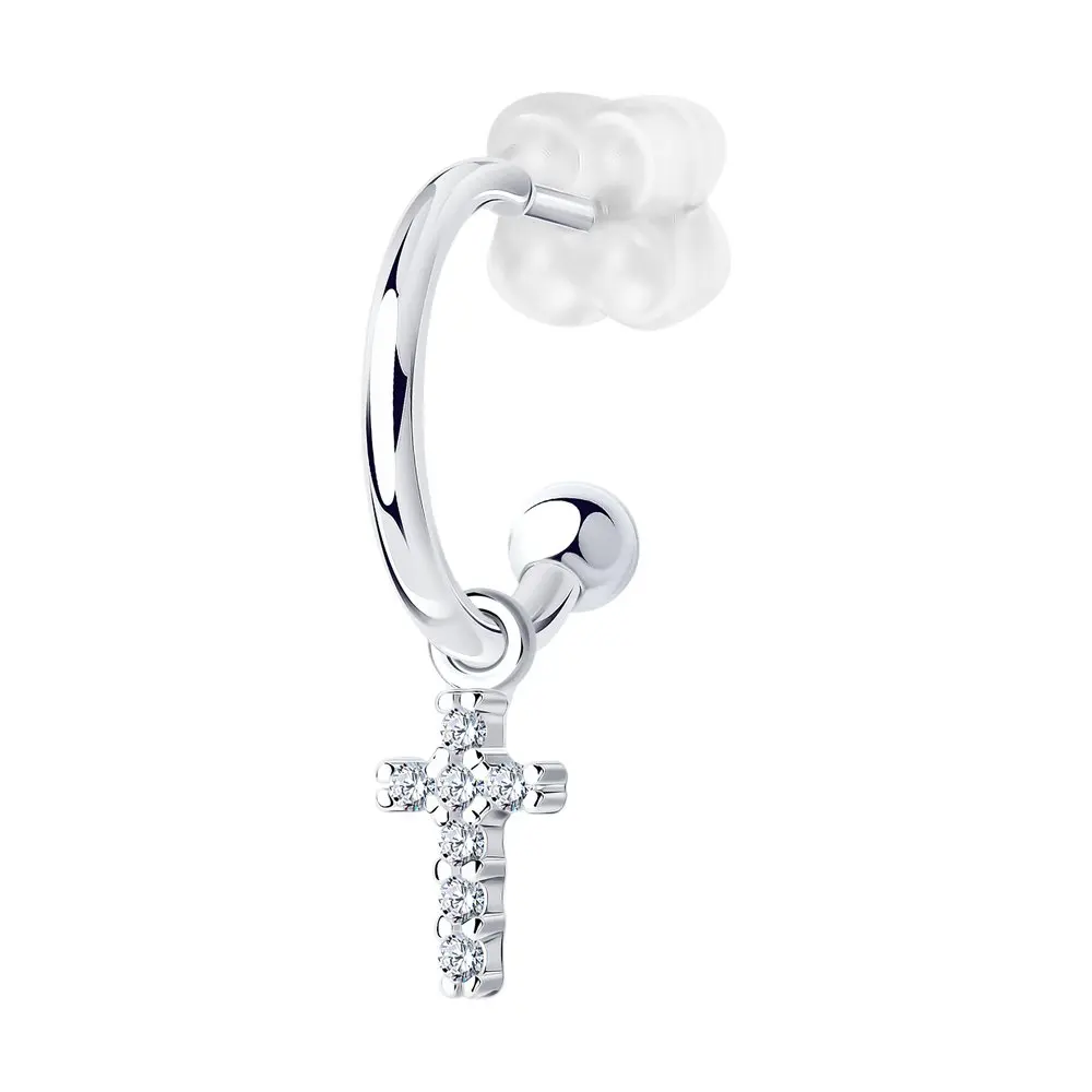 Серьга SKLV из серебра с фианитами, 1 шт.