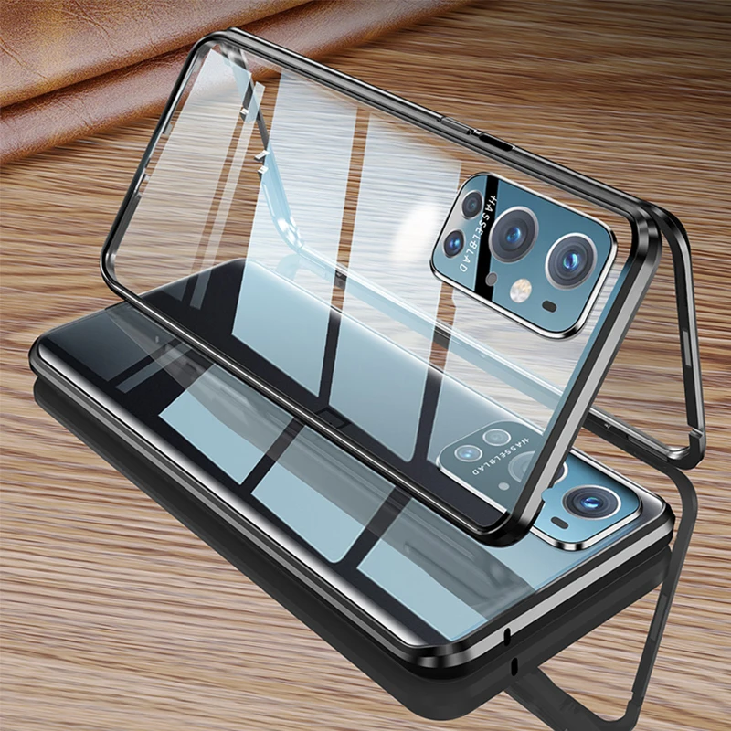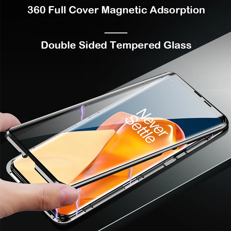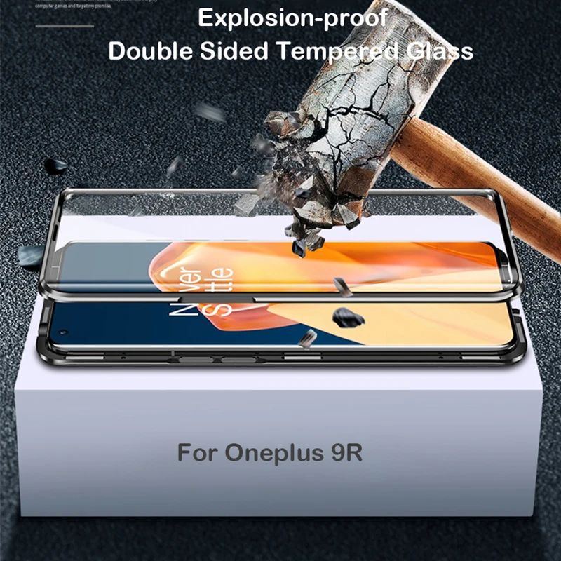 Полностью Магнитный чехол 360 градусов для Oneplus 9R 9 Pro 8T CE Nord 2, чехол, Алюминиевый металлический бампер, защита объектива камеры, чехол из закаленного стекла