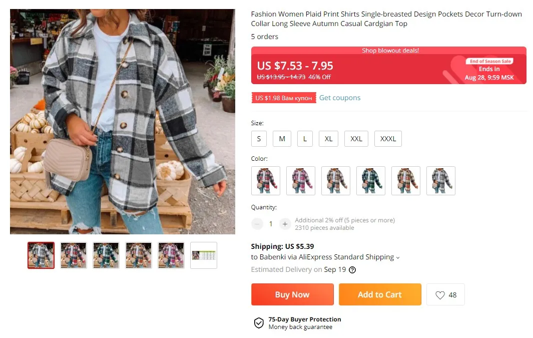 Страна: RU Color: Color 1 Size: L Ships From: China Доставка: Standard Shipping 16.10.2021