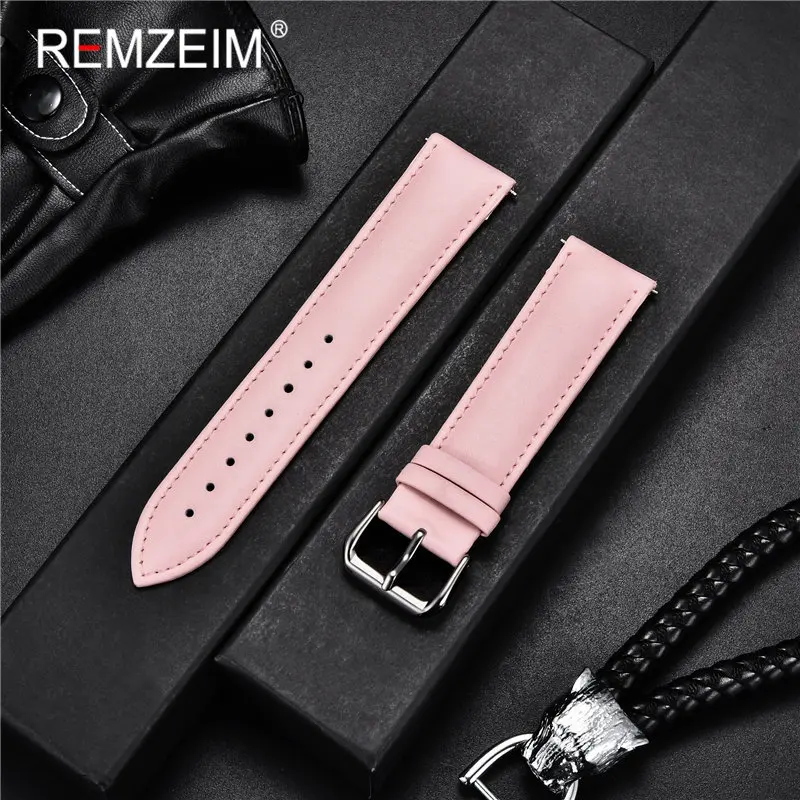 REMZEIM мягкой телячьей кожи Ремешки для мужчин женщин запасные ремешки для часов 14 мм 16 мм 18 мм20 мм22 мм повседневные ремешок для наручных часов