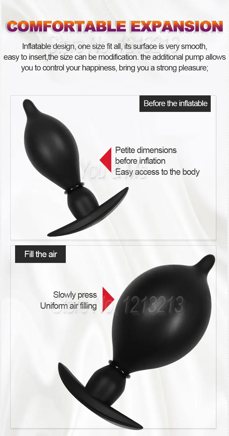 -Водонепроницаемый и легко чистится; -Нейтральный-подходит для мужчин и женщин; -Гладкая поверхность, быстрый отек после надувания, позволит вам чувствовать себя полными любви; -Воздушная подушка медленно расширяется до тех пор, пока не станет удобной; -Использование качественного силикона, без неприятного запаха, удобный и гигиеничный, нетоксичный и безвкусный, Безопасный в использовании; Надувной дизайн, один размер подходит всем, его поверхность очень гладкая, легко вставляется, размер может быть изменен. Дополнительный насос позволяет контролировать ваше счастье, приносит вам сильное удовольствие; -Надувная труба может быть съемной, и вы можете носить ее для покупок, занятий спортом и плавания. Наслаждайтесь анальным расширением в любом месте и в любое время; -Если вы хотите сдуть, вставьте надувную трубку и поверните столешницу клапана