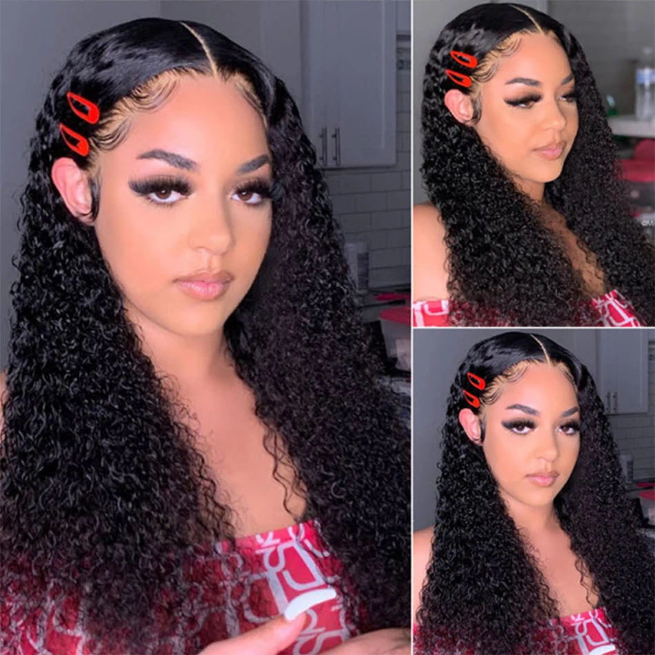 Монгольский кудрявый парик 4x4 парики с застежкой 180% предварительно выщипанный парик на сетке с детскими волосами 4x4 на сетке фронтальный парик из человеческих волос для женщин