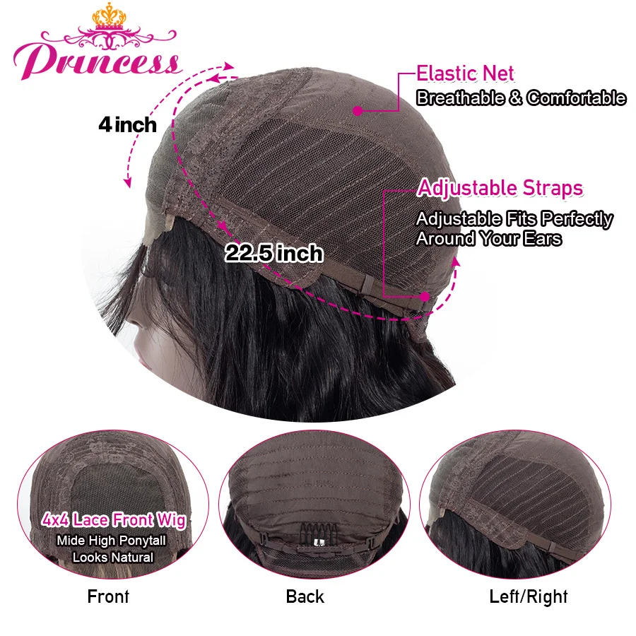 Парики принцессы 4x4 на сетке спереди, прямые волосы, бразильские человеческие волосы, парики на сетке для черных женщин, предварительно выщипанные с эластичными лентами