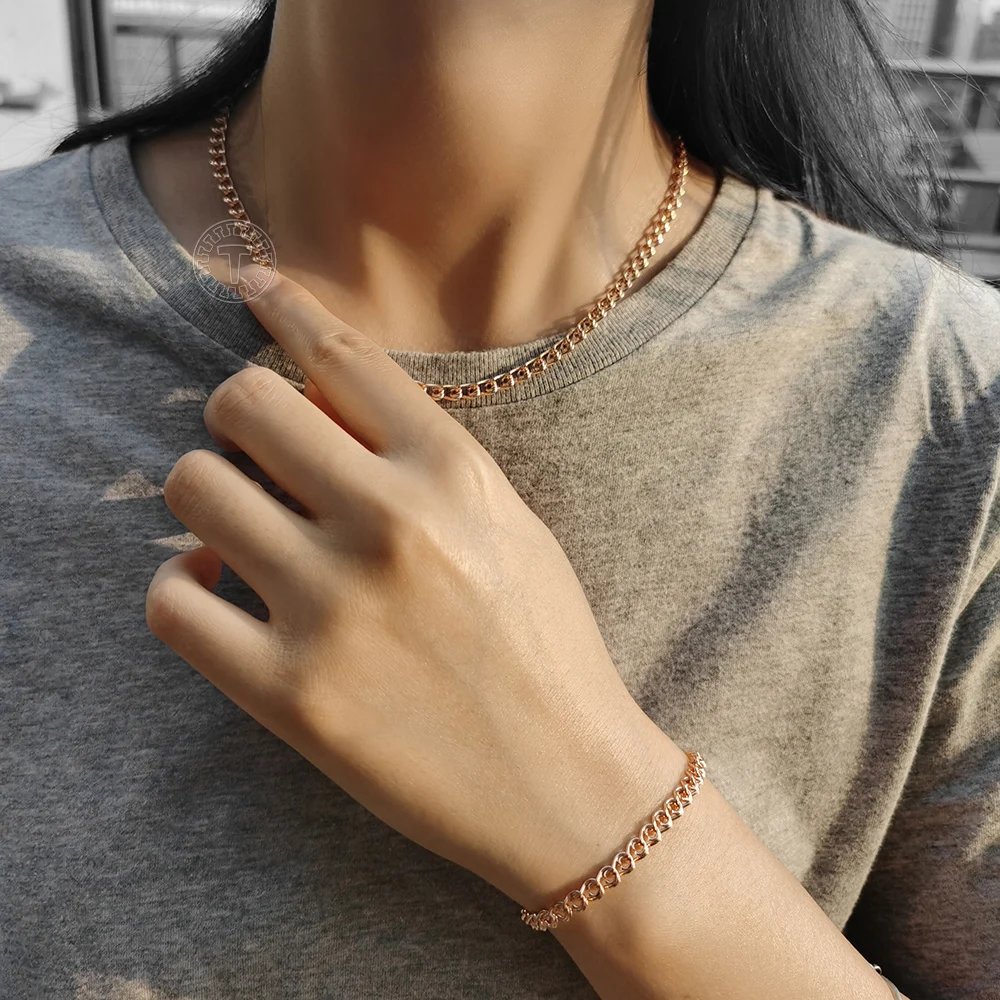 Комплект женских ювелирных украшений, ожерелье и браслет из змеиной цепи шириной 5 мм, розовое золото 585 пробы, с резьбой по крученой цепи, 1 комплект, CS23
