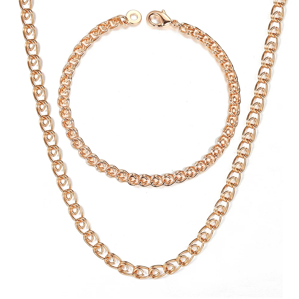 Модный женский комплект из браслета и ожерелья из розового золота 5...