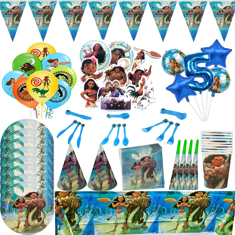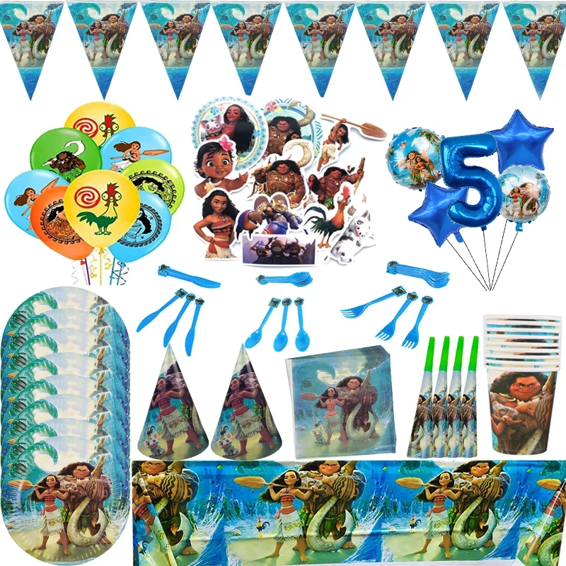 Аксессуары для украшения дня рождения Disney Моана, детская посуда для детского дня рождения, чашки, тарелки, баннеры, воздушные шары, сувениры, декор для мероприятий, подарок