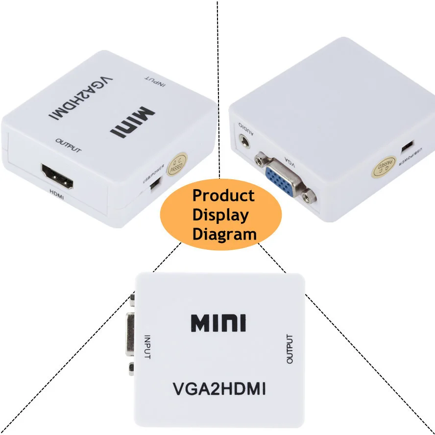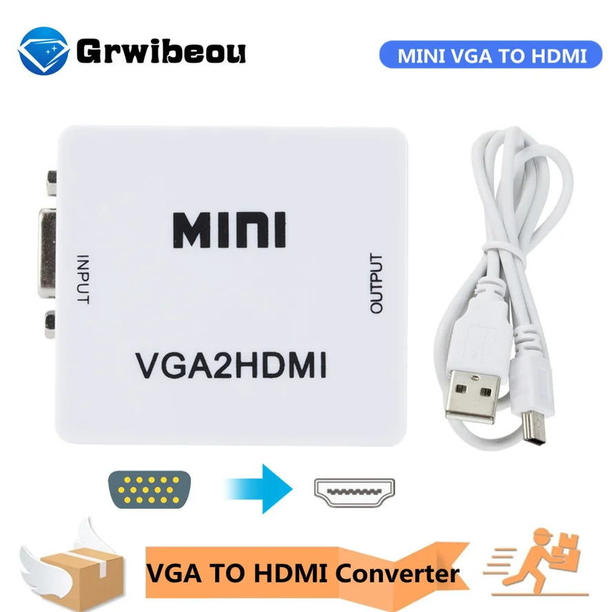 Портативный мини-конвертер Grwibeou с VGA на HDMI, видеоприставка VGA2HDMI, аудиоадаптер 1080P для ноутбуков, ПК, HD ТВ-проекторов, телевизоров