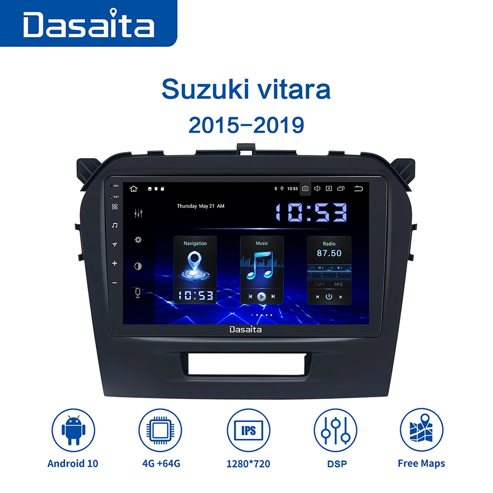 Dasaita 9 "Android 10 автомобильное радио 4 + 64 ГБ 1 Din аудио стерео Мультимедийный плеер GPS BT 5,0 с Carplay для Suzuki Vitara 2015-2019