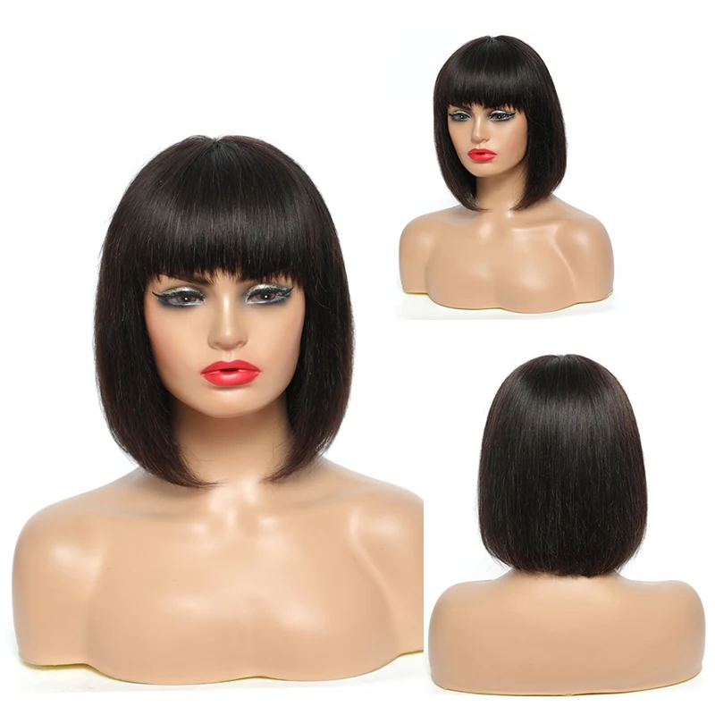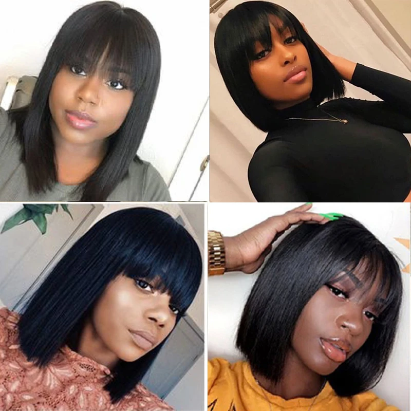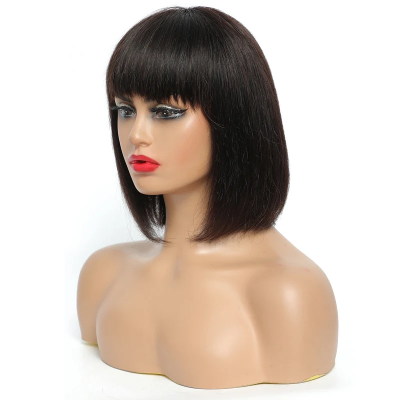 Короткие парики с челкой естественного цвета, бразильские прямые человеческие волосы, парики с полной машинкой для черных женщин, не Реми IJOY