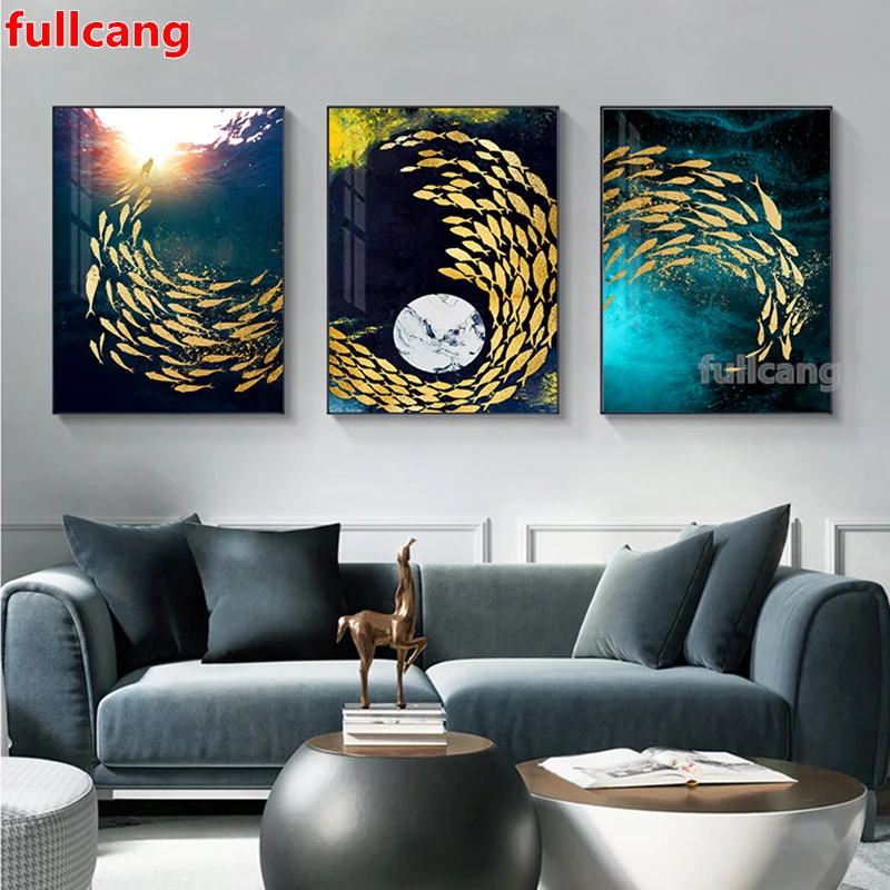 Картина для алмазной вышивки 5d "Большая Желтая рыба", 3 шт.