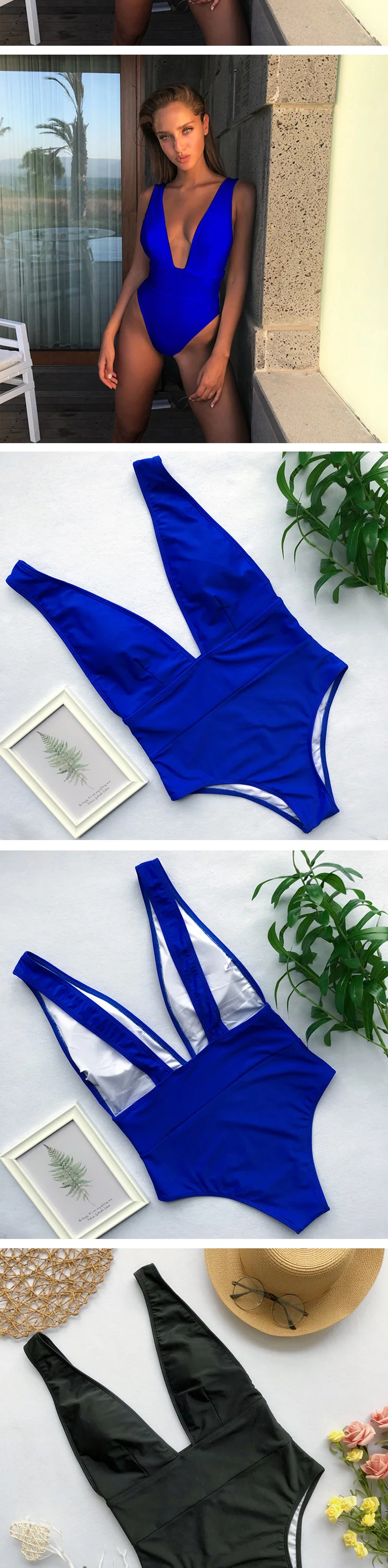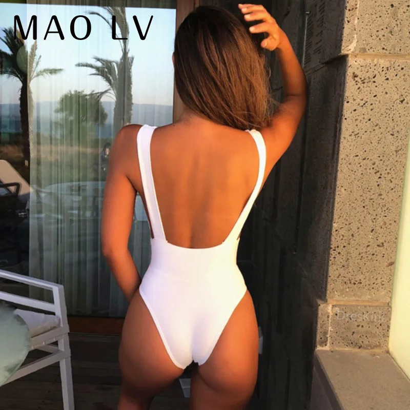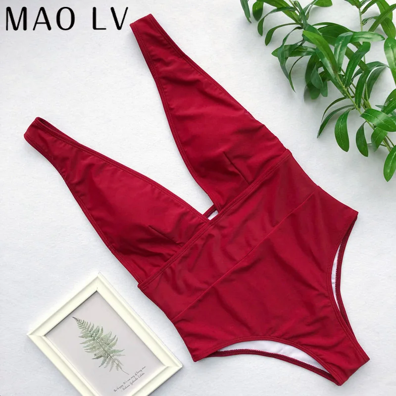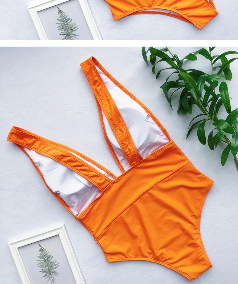 Слитный купальник женский 2021, пикантный купальник с глубоким V-образным вырезом, пуш-ап, бикини, однотонный монокини с открытой спиной, Бразильский купальный костюм