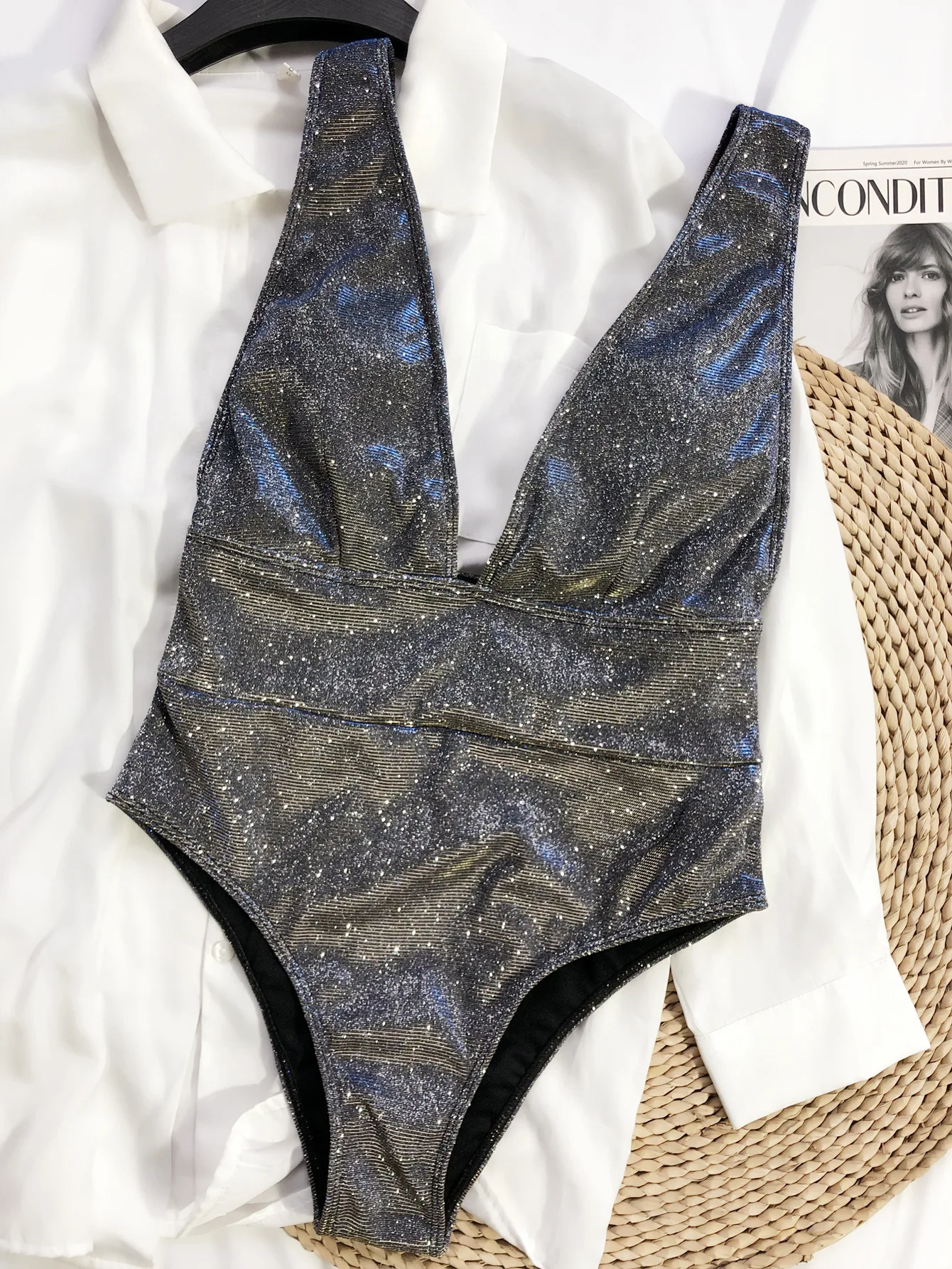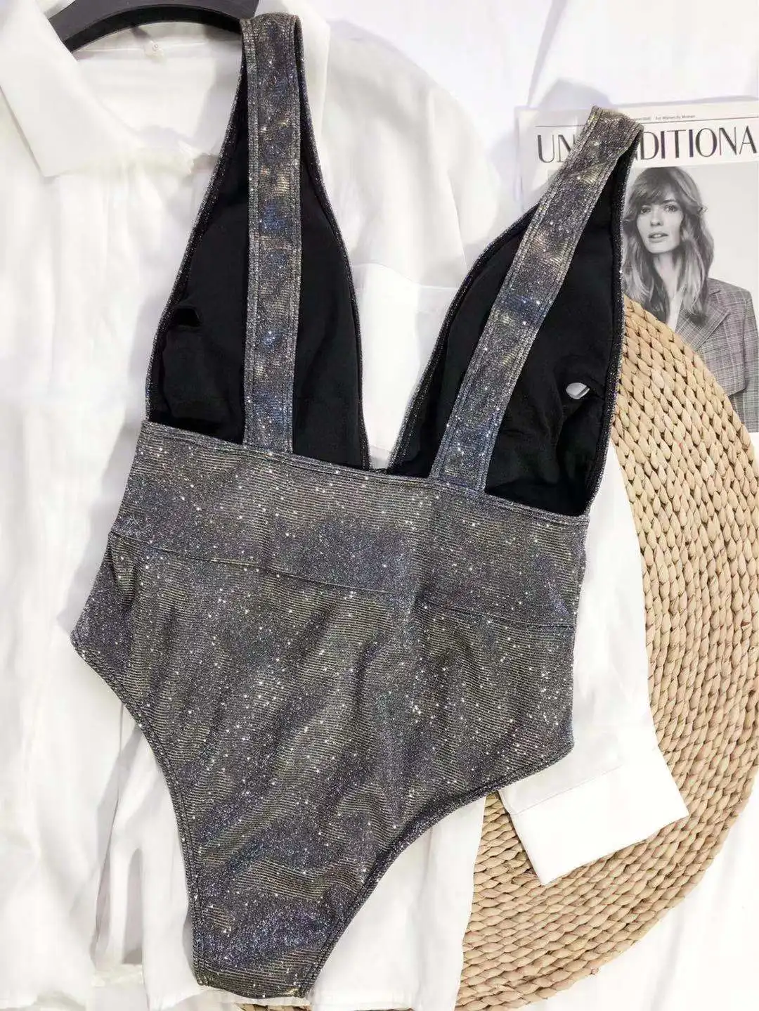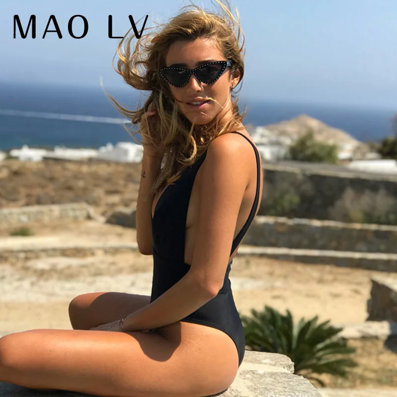 Слитный купальник женский 2021, пикантный купальник с глубоким V-образным вырезом, пуш-ап, бикини, однотонный монокини с открытой спиной, Бразильский купальный костюм