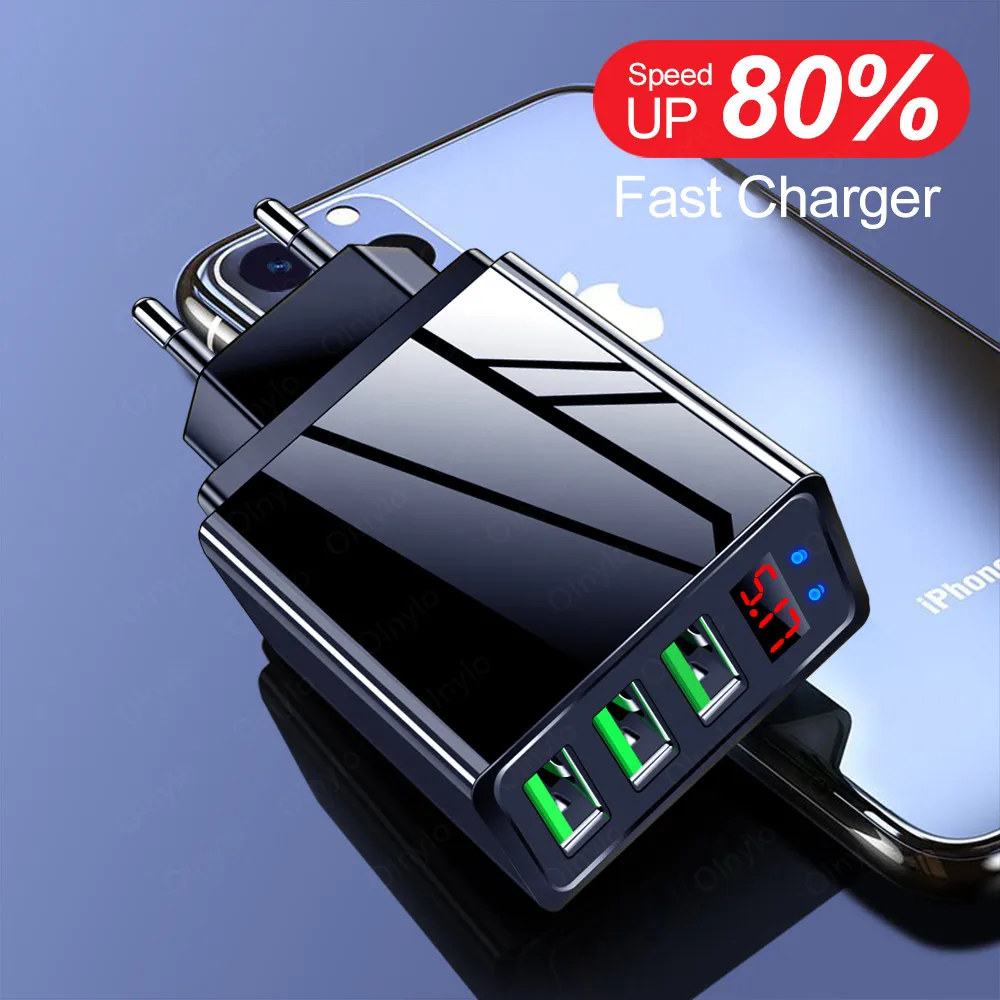 Быстрое зарядное устройство с цифровым дисплеем, 5 В, 3 А, USB 3,0, зарядное устройство для iPhone 11 X, Xiaomi, Samsung, Huawei, быстрая зарядка, настенное зарядное устройство для телефона