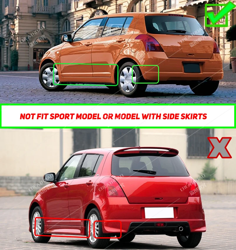 Фитинг: для Suzuki Swift II 2005-2010Не подходит для спортивной модели или модели с боковыми юбками