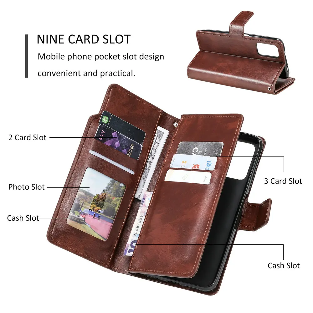 Кожаный чехол-Бумажник для телефона с 9 отделениями для карт для iP...