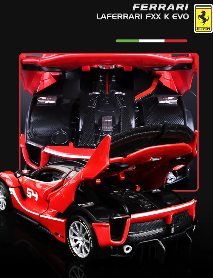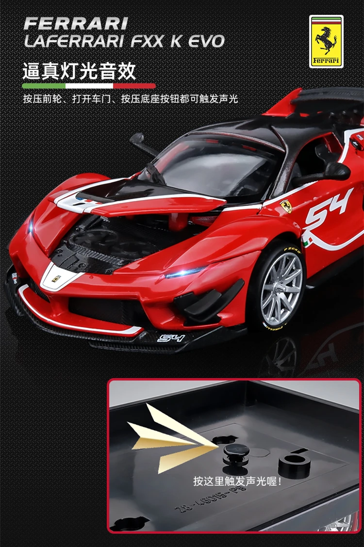 Модель автомобиля Bburago Ferrari FXX K EVO, акриловая прозрачная крышка с управлением освесветильник ением и акустикой, из сплава, 1:32
