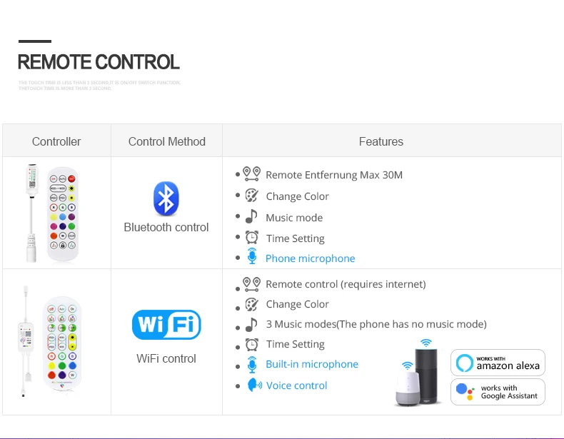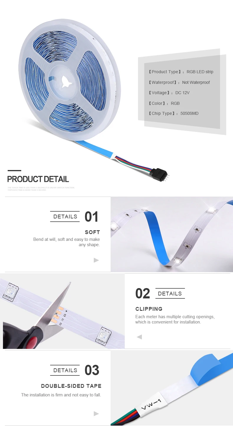 Разделение:SMD 5050 Светодиодная лентаШирина: 10 ммСветильник Цвет: разноцветный "Красный-зелёный-желтый в праздничные дни (включая белый)Степень защиты: IP20Напряжение: 12 В постоянного токаДлина: 5 м/10 м/15 м/20 м1)Bluetooth RGB контроллер:Входное напряжение: 5 в пост. Тока ~ 24 ВЗагрузка приложения: HappyLightingПоддержка мобильных устройств: Android/IOSФункция: пульт дистанционного управления, пульт дистанционного управления с регулируемой яркостью..2)Tuya WIFI RGB контроллер:Входное напряжение: 5 в пост. Тока ~ 24 ВСеть: 2,4 ГГц Wi-FiЗагрузка приложения: Tuya или Smart LifeПоддержка мобильных устройств: Android/IOSФункция: Голосовое управление, дистанционное управление с помощью приложения, регулировка яркости, Совместимость с Amazon Alexa Echo Google Home Assistant, IFTTTОсобенности:【Пульт дистанционного управления 】 даже если вы не дома, вы можете управлять умной светодиодной лентой вкл/выкл с помощью телефона через приложение Tuya или smart Life. Легко установить расписание для вашей умной светодиодной ленты. Подгоняйте свой домашний светильник, например, устанавливайте светильник s, чтобы включаться в сумерках или выключаться на рассвете. Вы можете создать группу для всех ваших умных светодиодных лент и управлять ими с помощью только одной команды. Работает с 2,4 ГГц сети Wi-Fi.【Голосовое управление 】 Управляйте вашей умной светодиодной лентой через ваш голос с помощью Google Assistant. Просто дайте голосовую команду, чтобы включить/выключить или затемнить/осветить ваш светильник, даже переключите светильник на определенный цвет, как вам нужно. Концентратор не требуется и прост в установке. Нет необходимости подписки.【Changing】выразите себя и сделайте свое пространство более креативным с помощью смарт-светодиодной ленты. Выберите из 16 миллионов цветов и оттенков белого, чтобы мгновенно изменить внешний вид и атмосферу вашей комнаты. Управляйте удаленно с помощью вашего умного устройства, создавайте индивидуальные сцены и раскрывайте свое творчество. Встретить ваши вечерние, читать, светильник для отдыха.【Энергосбережение и широкое использование 】 с помощью СВЕТОДИОДНЫЙ технологии, сохраните заряд электроэнергии с помощью новейшей технологии освещения. Эту лампу можно использовать в любом месте, где вам нужен красочный светильник, такой как Домашний Светильник для помещений, отель, конференц-зал, музей, рестораны, бар, кафе, праздникСоветы -- приложениеБудьте уверены в том, что вы используете 2,4 ГГц Wi-Fi при подключении к смарт-лампы. И Wi-Fi должен быть обнаружен статус. Многие роутеры имеют Wi-Fi 5 ГГц и 2,4 ГГц сети и ваш телефон всегда будет автоматически подключится к Wi-Fi 5 ГГц сети. Таким образом, вы должны полностью отключить свою сеть 5 ГГц, перейдя к настройкам маршрутизатора (введите ip-адрес маршрутизатора в Ваш Интернет-браузер, как правило, что-то похожее на 192.168.1.1), заставляя вашего телефона для подключения к 2,4 ГГц сети.Кроме того, режим шифрования маршрутизатора должен быть WPA2-PSK типом, а тип аутентификации должен быть AES.