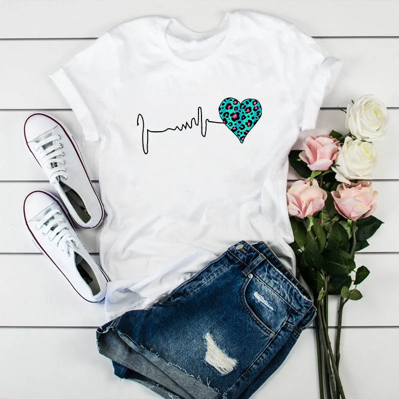 Женские 2021 ";" леопардовое сердце "Летнее платье с узором в точку, для девушек, Топы И Футболки, футболка женские милые туфли-лодочки Графический Женский футболка, Т-футболка размера плюс XXXL