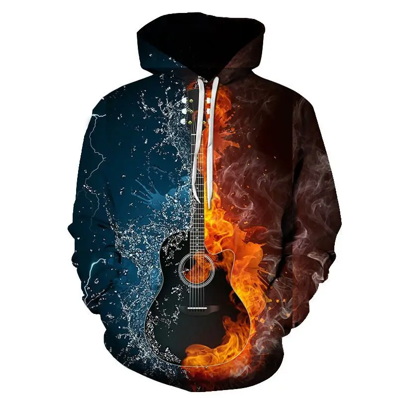 Рок музыка саксофон гитара толстовка с пламенем 3D Толстовка Мужска...
