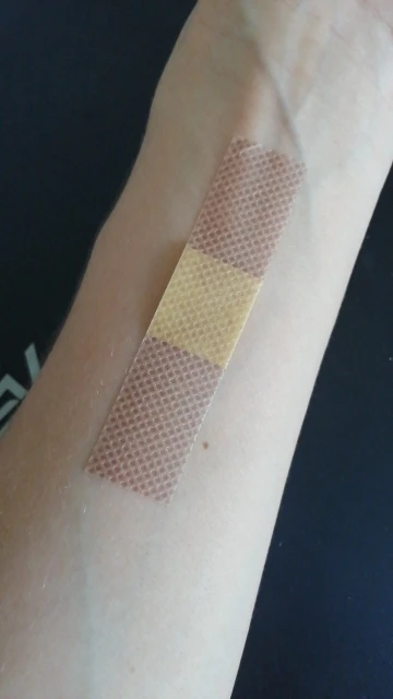 Случайно наткнулся на эту штуку, сходу взял. А что, у нас в 10 раз мЕньший объём стоит на 1-2 десятка рублей дешевле. А тут сотня ценой меньше 1,5 сотки. На руку прилепился отлично, плотно. Только отрывать больно было (на фото 3 видно след от депиляции). Продавца рекомендую.