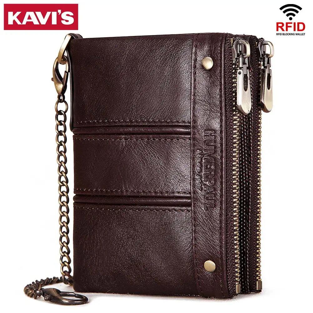 Кошелек KAVIS мужской из 2021 натуральной кожи, короткий бумажник мини с кармашком для мелочи, мужское портмоне с рчид-защитой