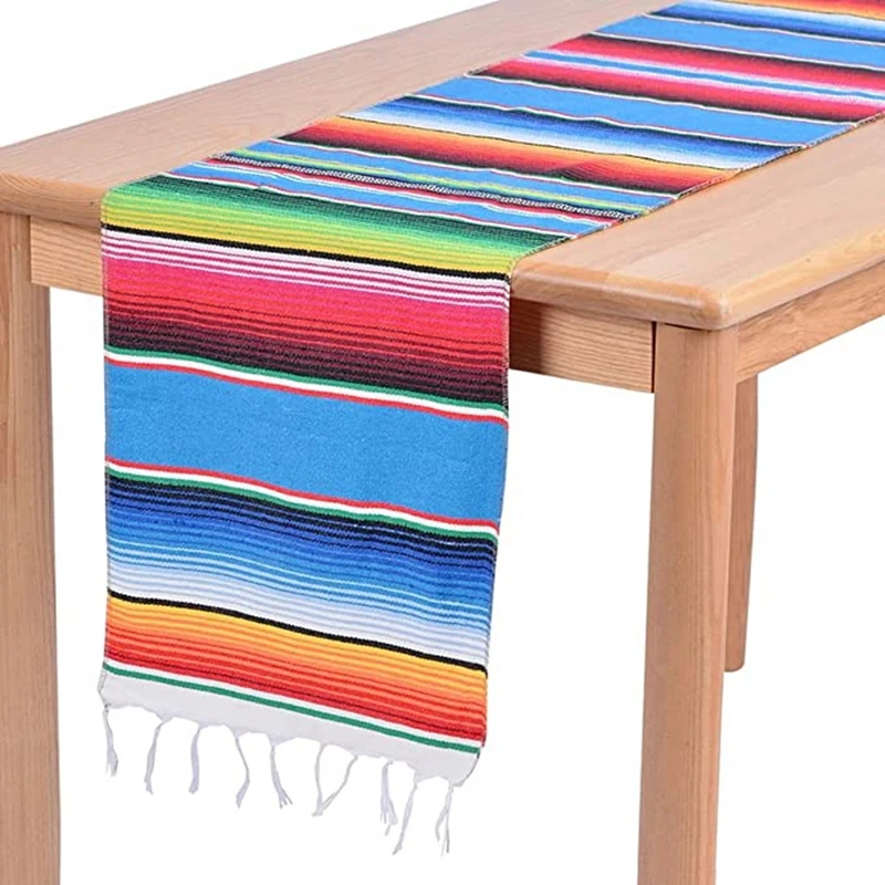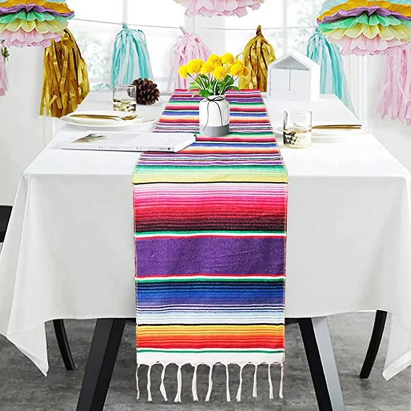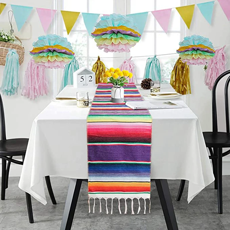 Inyahome Мексиканская полоса красочная настольная дорожка с кисточками украшения вечерние мексиканское одеяло Serape настольная дорожка чехол домашний декор