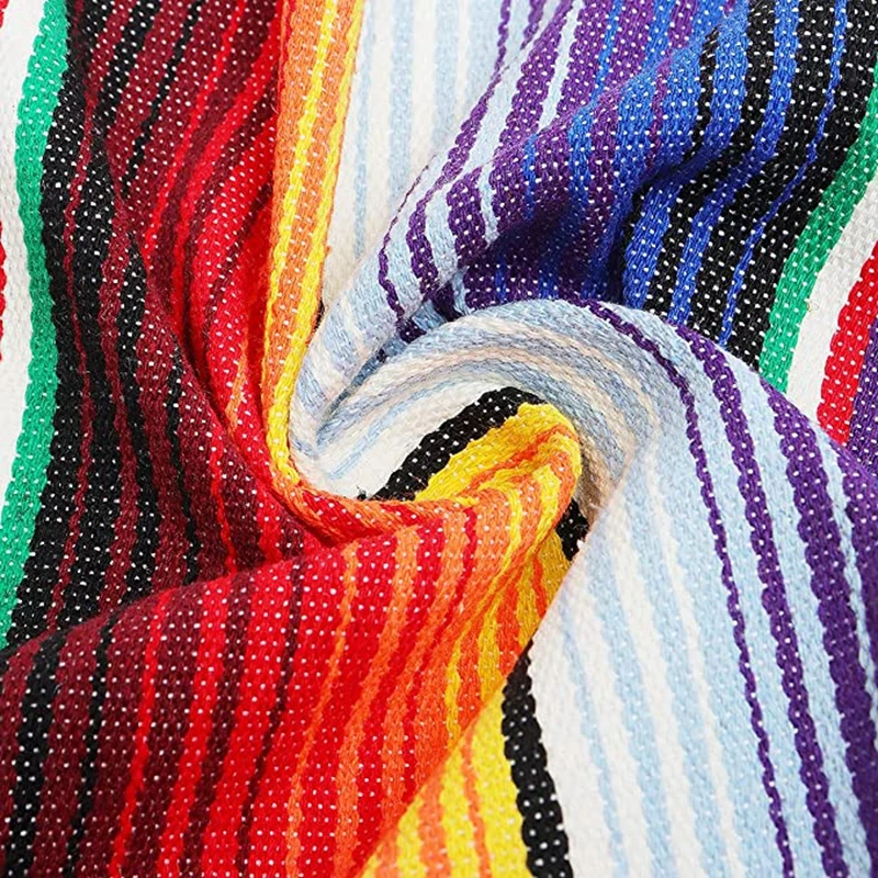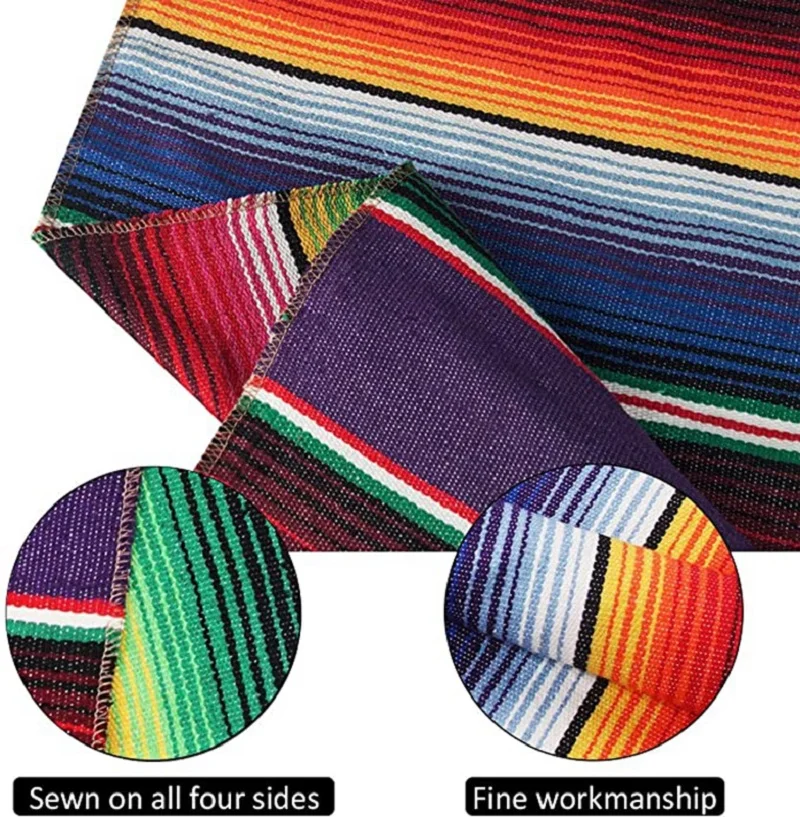 Высококачественные и прочные хлопковые скатерти сшиты со всех сторон, их нелегко рассыпать. Скатерть украшена кисточками и сшита с четырех сторон. Линия с кисточками не легко ломается. Это высококачественное мексиканское одеяло.