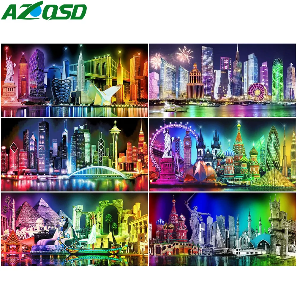 AZQSD городская алмазная живопись, пейзаж, крест, вышивка 5d Diy Ал...