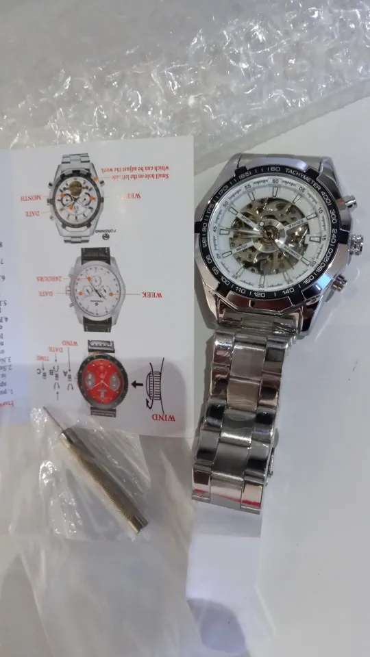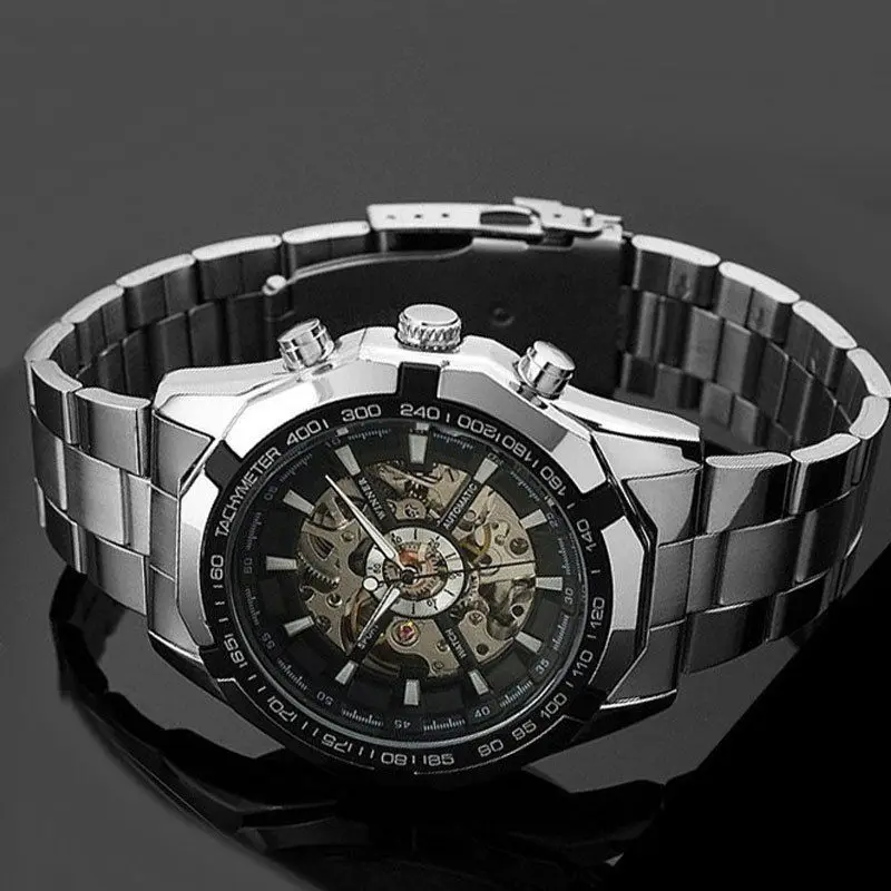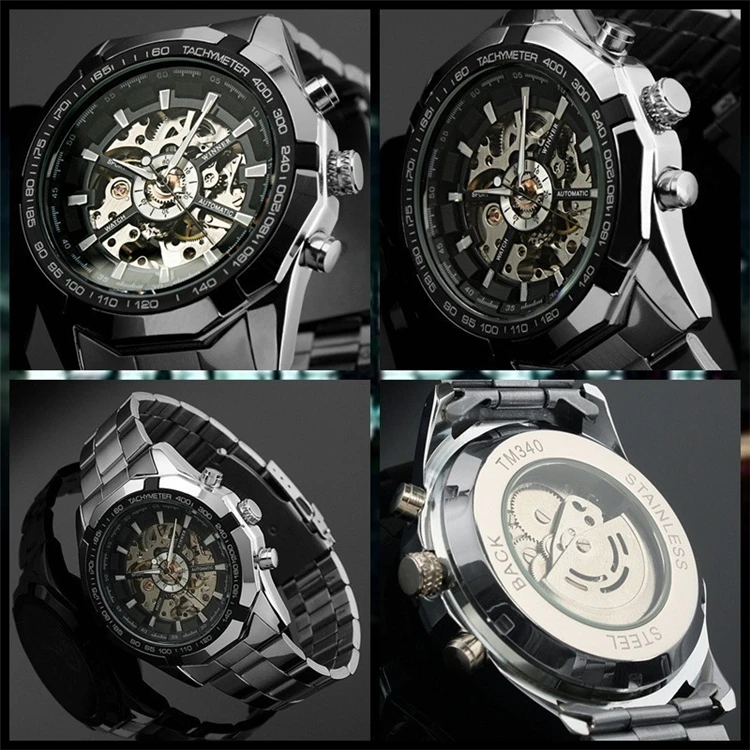 Мужские механические наручные часы-скелетоны из нержавеющей стали