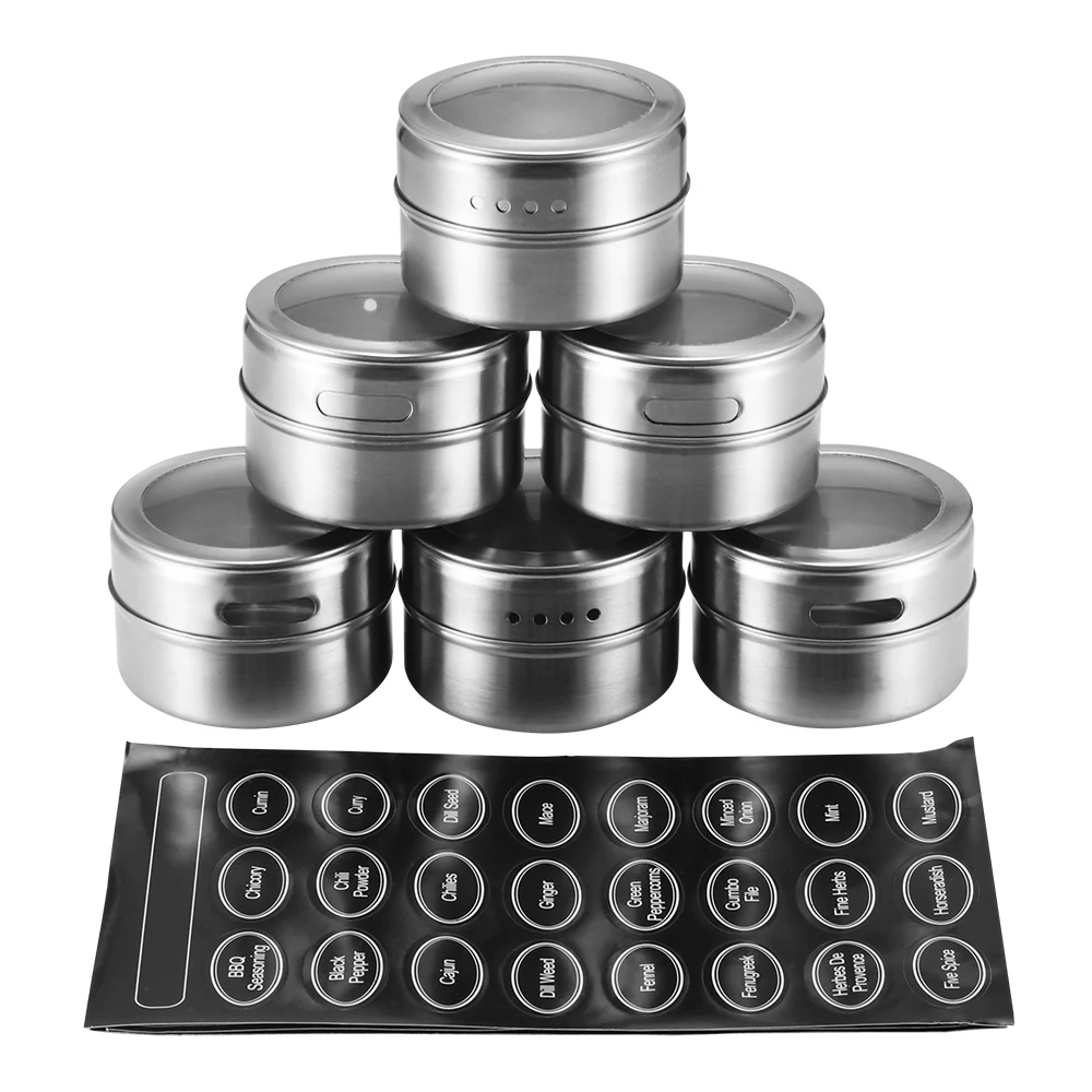 6 шт., Магнитные Банки для специй с этикетками для специй, набор магнитных банок для специй из нержавеющей стали, магнитный кухонный инструмент для холодильника