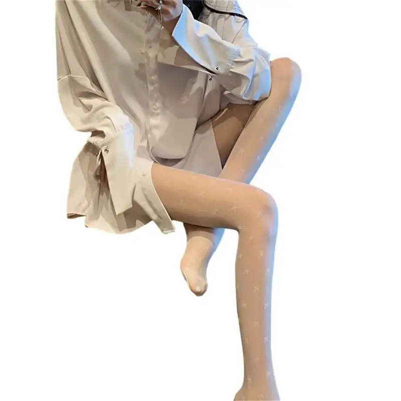 Соблазнительные кружевные длинные носки, чулки, женские гольфы выше колена, однотонные ультратонкие чулки для женщин и девочек, Гольфы с бантом