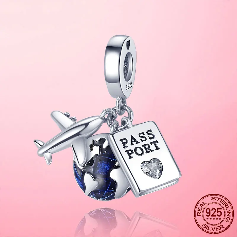 Подвески для путешествий из серебра 925 пробы с паспортом и самолет...