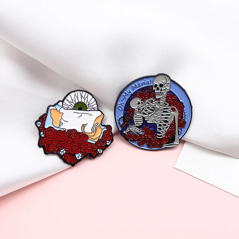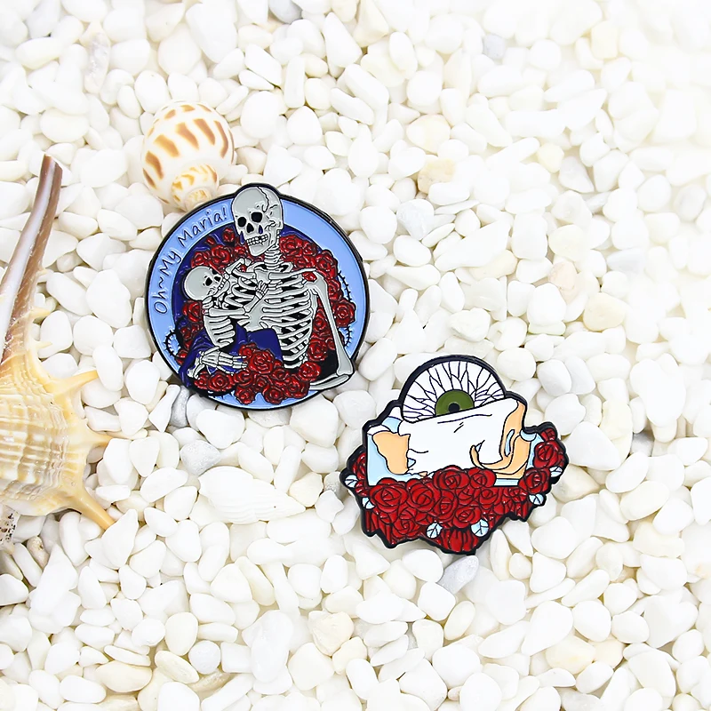 Брошь в виде цветка, черепа, глазного яблока, музыкальной шкатулки, о моя Мария! Скелет, мама, ребенок, птица на эмали, булавки, роза, любовь, лацкан, брошь, значок, ювелирные изделия