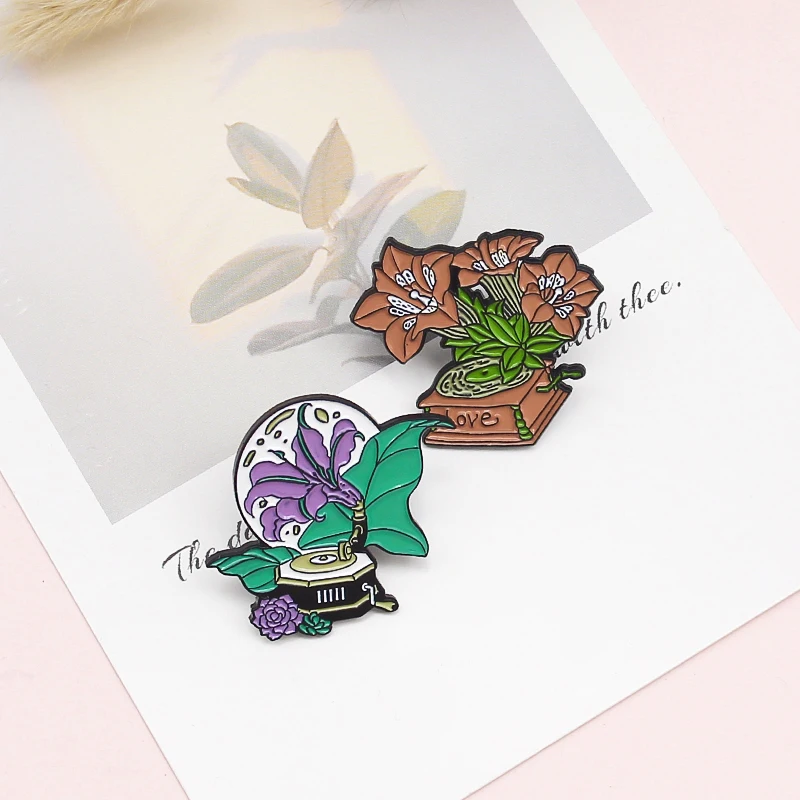 Цветочная музыкальная шкатулка, эмалированные булавки, красные, фио...