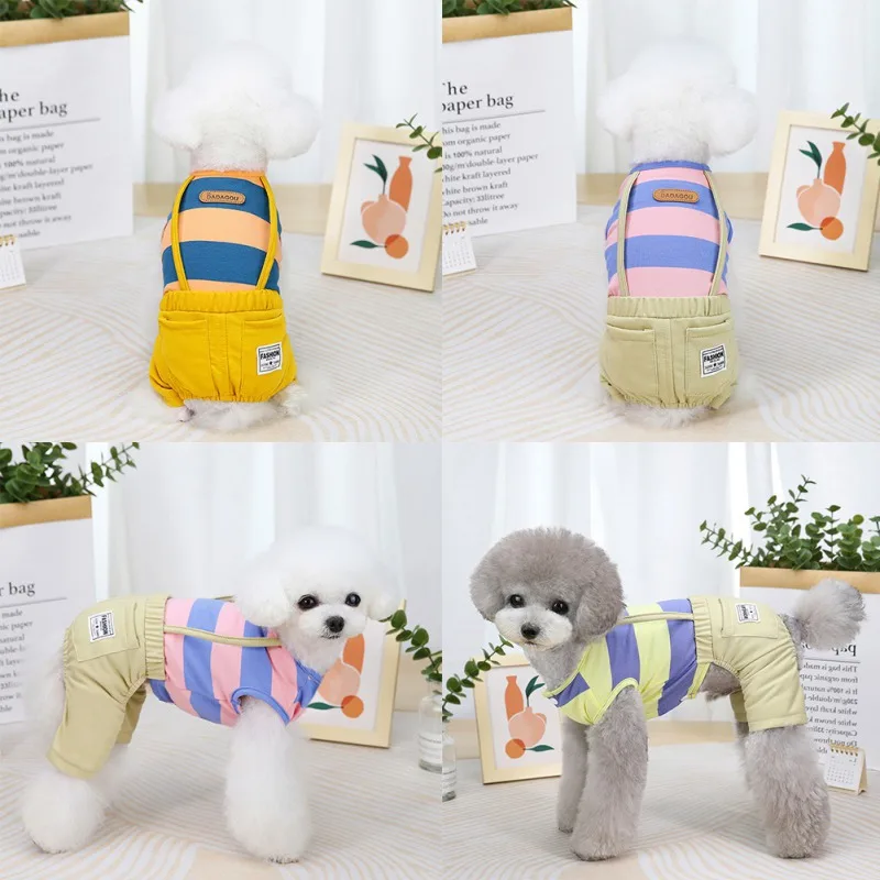Комбинезон в полоску для домашних животных, хлопковое пальто с капюшоном для кошек и щенков, штаны, зимняя одежда для собак, Тедди