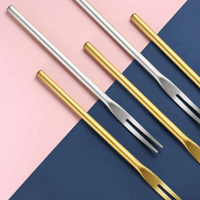 304 нержавеющая сталь фруктовый салат вилка 1 шт. цвета: золотистый, серебристый винтажные десертные торт фрукт вилка столовые приборы, креативная украшения для пирогов, модная Столовая Посуда