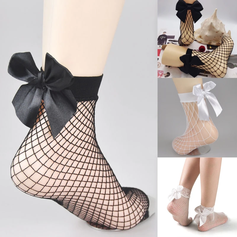 Новинка 2021, полые женские носки с бантом, сетчатые женские коротк...