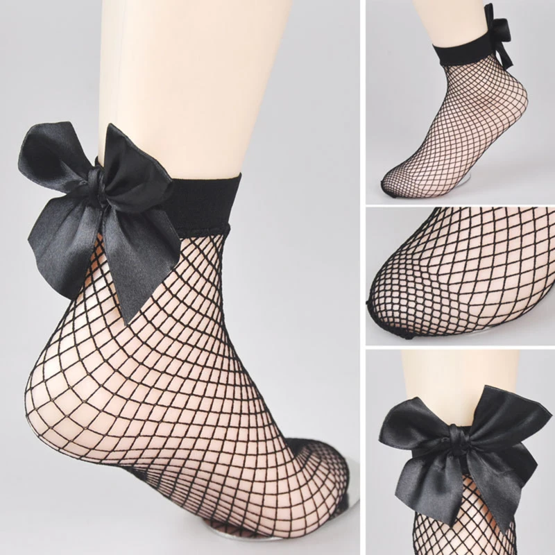 Носки женские сетчатые с бантом, дышащие пикантные сетчатые, в стиле Харадзюку, уличная одежда, черные с вырезами, для девушек
