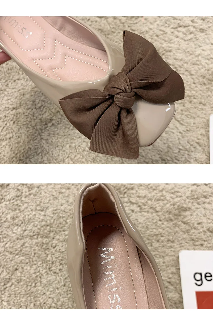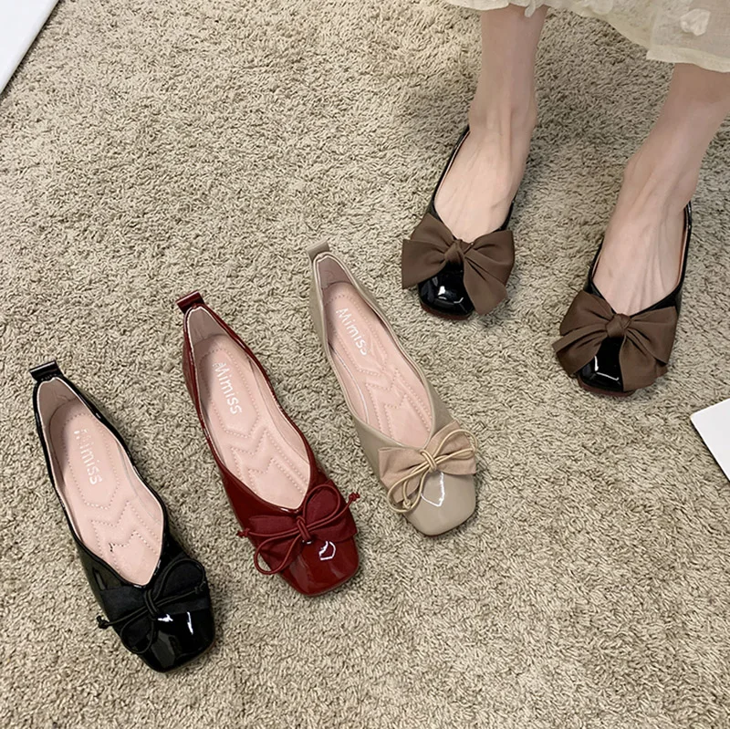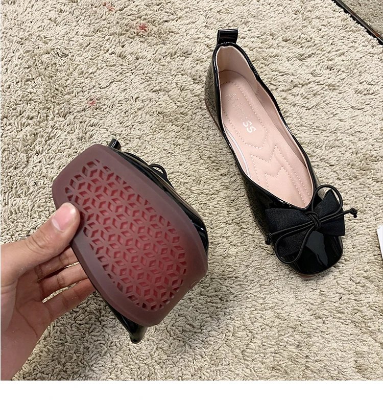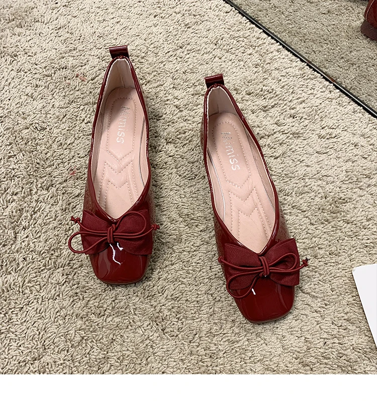 Туфли женские из лакированной кожи, с квадратным носком и бантиком, 9234N