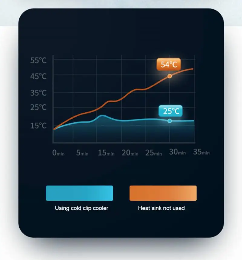 -Радиатор охлаждения является мощным и оснащен usb-кабелем для передачи данных. Подключите источник питания для автоматического включения и охлаждения немедленно.
