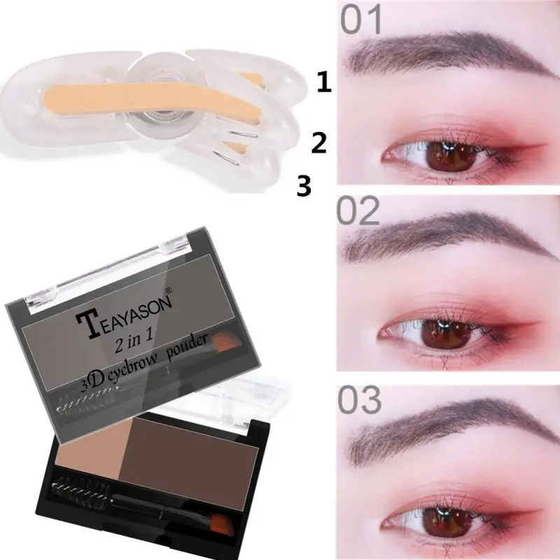 Регулируемый штамп для бровей, 2 цвета, водостойкая пудра для брове...