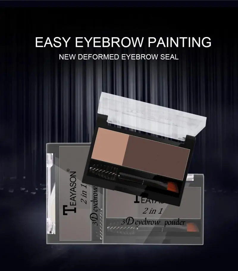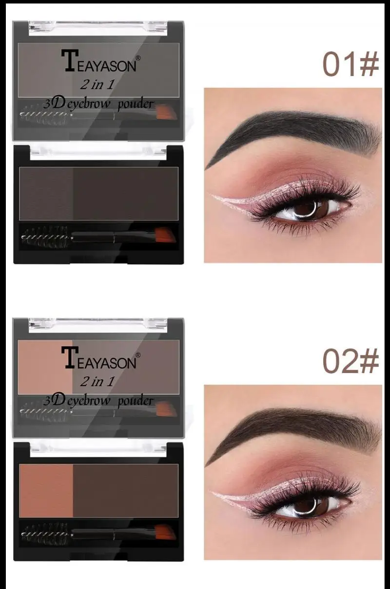 Профессиональная палитра теней для бровей Пудра с кистью, 2 цвета, натуральный стойкий водостойкий макияж для бровей TSLM1