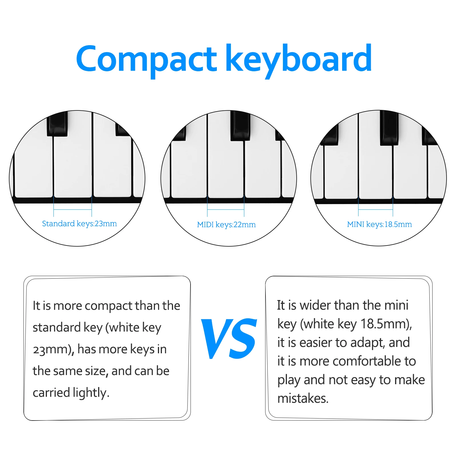 Имеет множество функций и прост в использовании. Благодаря USB-соединению вы можете наслаждаться музыкой, когда захотите. Прилагаемое Руководство пользователя поможет вам быстро понять функции и функции этой midi-клавиатуры. Особенности: Драйвер не требуется, питание от USB и внешнее питание не требуется. Удобно носить с собой. Сенсорные датчики Capactive для управления шагом/модуляцией. Особенности со сдвигом для индивидуальных функций и октавы/Транспозиции. 4 настраиваемых ручки: T1 (громкость), T2 (панорама), T-3 (контроллер выражения), T4 (реверберация). Портативный размер для удобной переноски. Дизайн разумного размера и компактности, удобство использования. Светодиодный ным дисплеем для точного управления. Совместим с различным программным обеспечением для расположения музыки. С противоскользящей резиновой прокладкой для более безопасного использования. Характеристики: Основной цвет: белый Основной материал: пластик Ключи: 61 клавиша Максимальное количество полифонов: 64 Размер изделия: 850*135*35 мм/33,5*5,3 * дюйма Вес изделия: 2085 г/фунта Посылка: 930*200*100 мм/36,6*7,9 * 3.9in Вес посылка: 2824 г/фунта Упаковочный лист: 1 * электронная клавиатура 1 * USB кабель 1 * Руководство пользователя