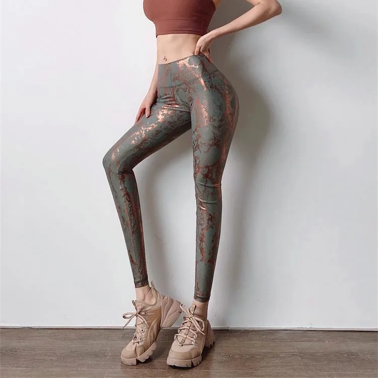 Облегающие эластичные Леггинсы для йоги с горячим тиснением, змеины...