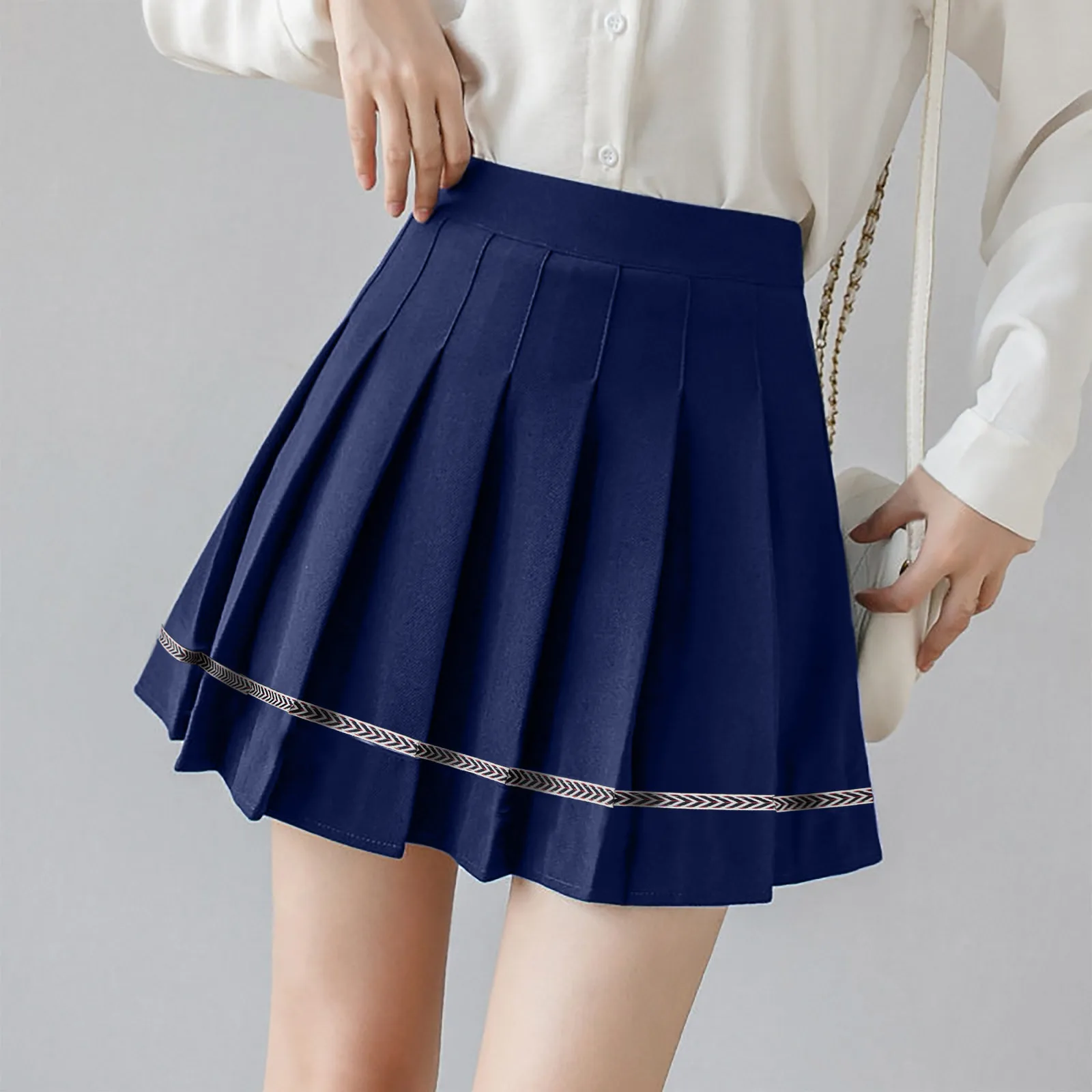 Женская мода Высокая талия плиссированная тонкая однотонная трапециевидная юбка