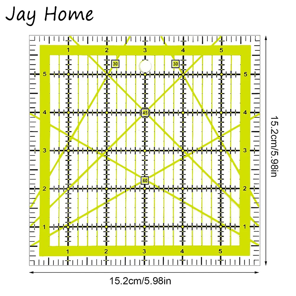 Линейка для квилтинга 6x6 дюймов, квадратная акриловая линейка для шитья, лоскутного шитья с цветными сетчатыми линиями для самостоятельной сборки, линейка для резки ткани